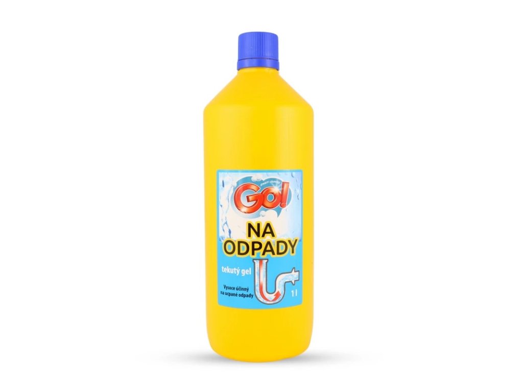 GO! Na odpady 1 l je vysoko účinný tekutý gél na čistenie a uvoľňovanie upchatých odpadov v kuchyni, kúpeľni aj WC. Vďaka hustému gélovému zloženiu pôsobí priamo v mieste upchatia, a to aj pri neodtekajúcej vode.