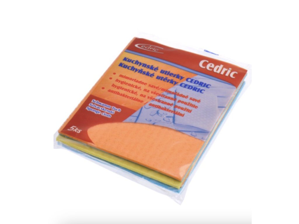 Antibakteriálna utierka Cedric z viskózy je mimoriadne savá a praktická na utieranie kuchynskej linky, stola, desky či rozliatych tekutín. Balenie obsahuje 5 ks utierok, vhodných do domácnosti aj profesionálneho prostredia.