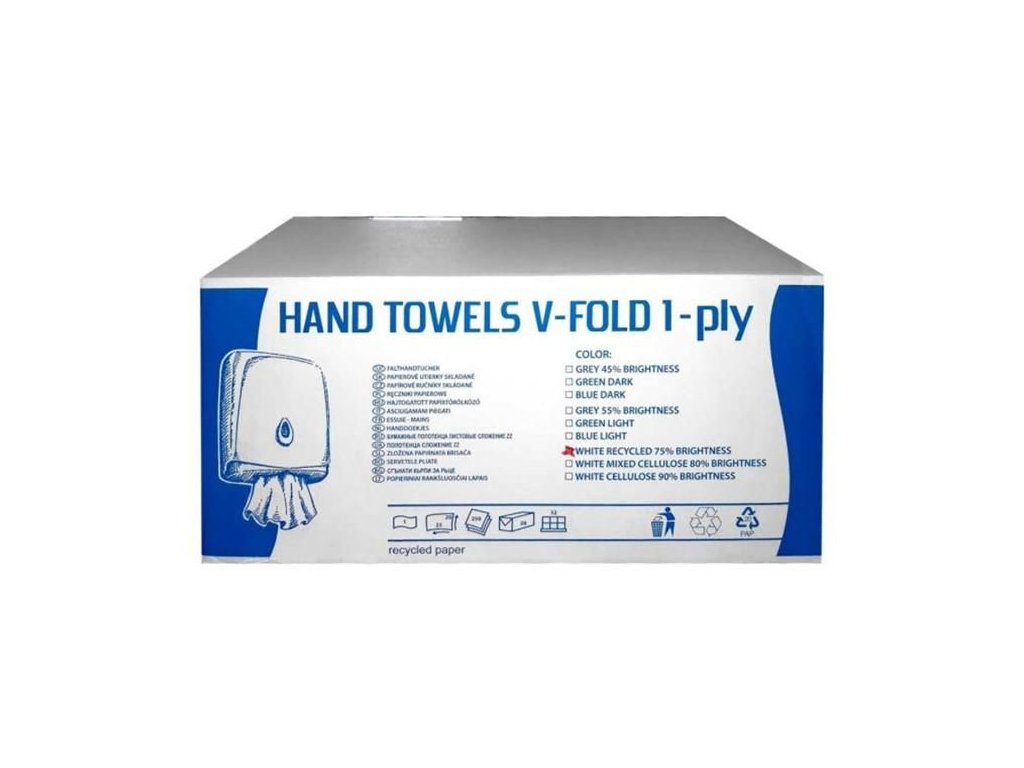 V-fold papierové utierky na ruky sú vyrobené z kvalitnej celulózy a majú 2-vrstvové prevedenie pre vyššiu savosť a pevnosť. Skladanie typu V-fold umožňuje hygienické dávkovanie po jednej utierke, čím sa znižuje spotreba a zvyšuje čistota.